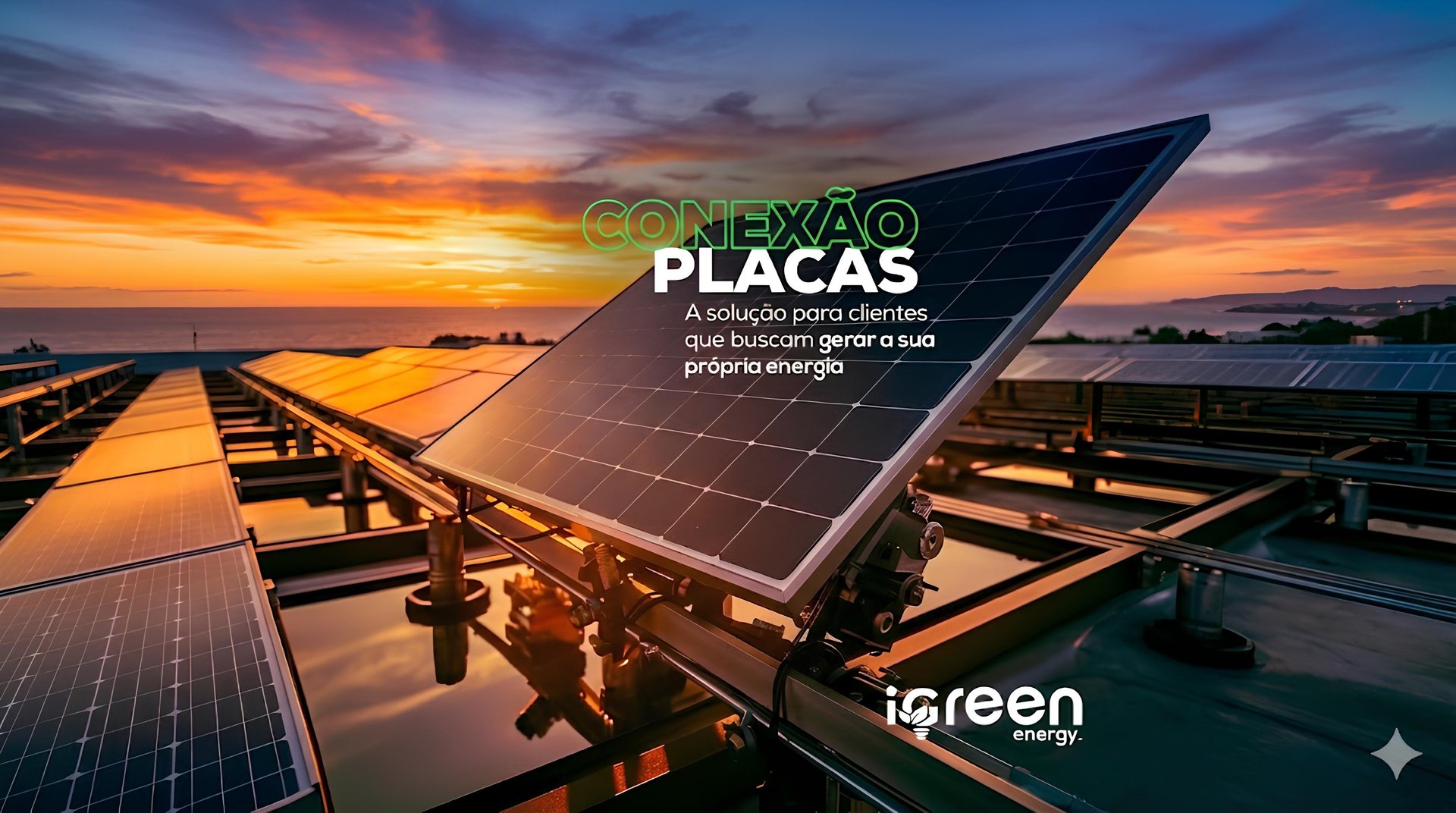 A Conexão Placas é a solução de energia solar da iGreen Energy para geração própria de energia por meio de painéis fotovoltaicos, com foco em economia, sustentabilidade e valorização do imóvel.
