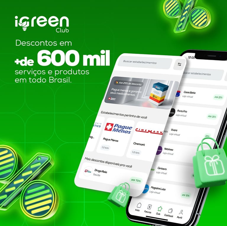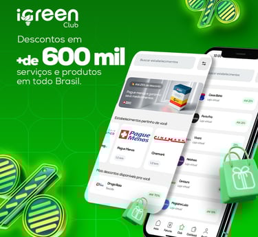 Os membros do iGreen Club têm acesso a descontos em mais de 600 mil produtos e serviços em todo o Brasil, incluindo saúde, educação, lazer, alimentação e serviços do dia a dia.